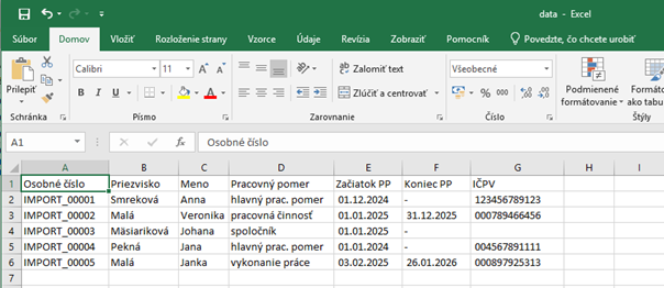 Uvedieme príklad. Personalista chce skontrolovať u zamestnancov zadanie Identifikačného čísla právneho vzťahu (IČPV) s údajmi v Exceli.