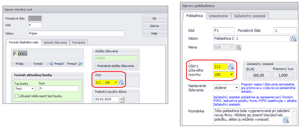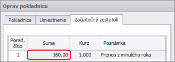 - Začiatočný zostatok – uvedený je v menu Číselník – Pokladnice – v záložke Začiatočný zostatok).