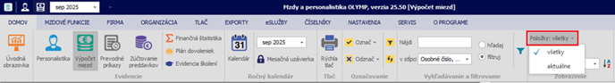 1. Vygenerujete výplatu zamestnancovi aj napriek tomu, že už u Vás nemá pracovný vzťah. V prípade, že zamestnanca nevidíte v evidencii Výpočet miezd, stačí na paneli Zobrazenie zvoliť Položky všetky.