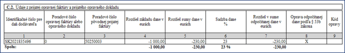 V stĺpci Poradové číslo opravnej faktúry alebo opravného dokladu bude uvedená nula. V stĺpci Poradové číslo pôvodnej prijatej faktúry bude uvedené číslo faktúry k neuhradenému záväzku, ktorý nebol v lehote 100 dní od dátumu splatnosti uhradený.
